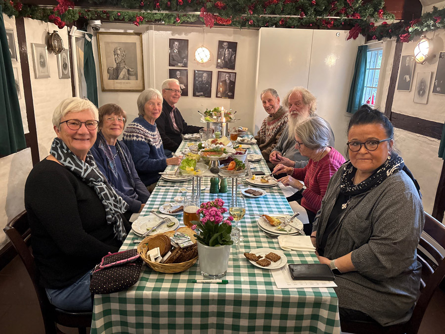 Vi ”gamle” indtog frokost i borgmesterstuen i Hansens Gamle Familiehave, og det blev fulgt op af kaffe, te og kage hos Lise og Dion, begge steder med meget hyggeligt samvær.