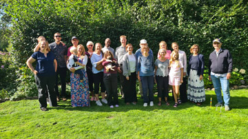 Tre generationer. 23 voksne og 17 børn fra 0-14 år.